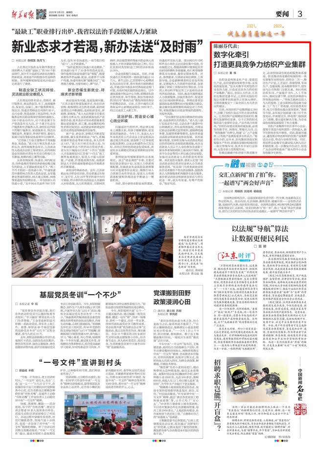 刊發(fā)媒體:《新華日報》3月3日第3版